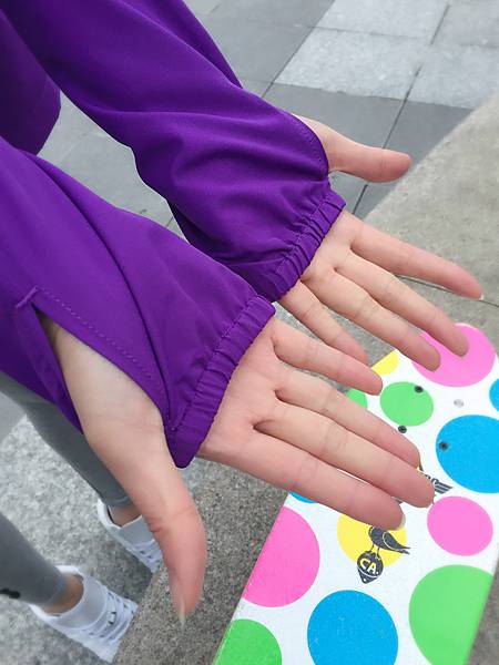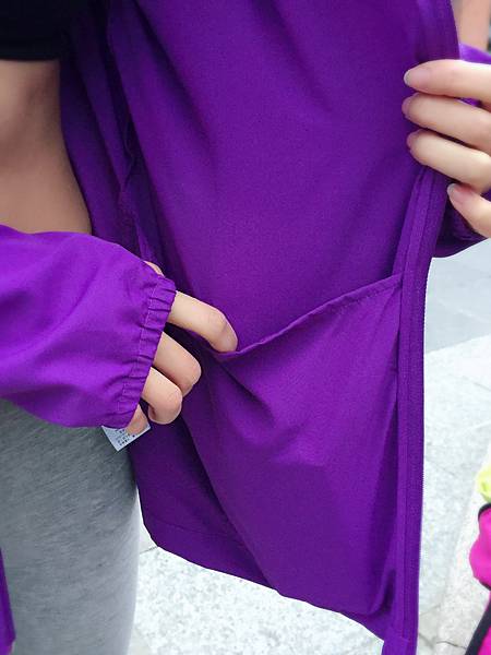 這款 抗UV 涼感輕量連帽外套貼心的設計了開口,騎車或運動時就不用擔心手背會曬傷囉 ![]()
