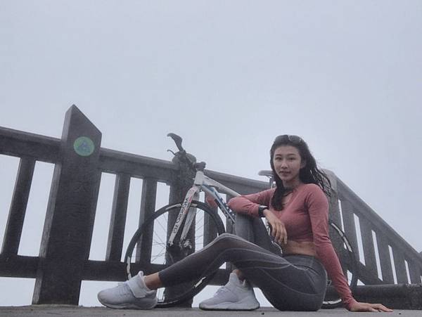 旁邊那台腳踏車是跟山頂巧遇的熱心車友借來拍照的喔!