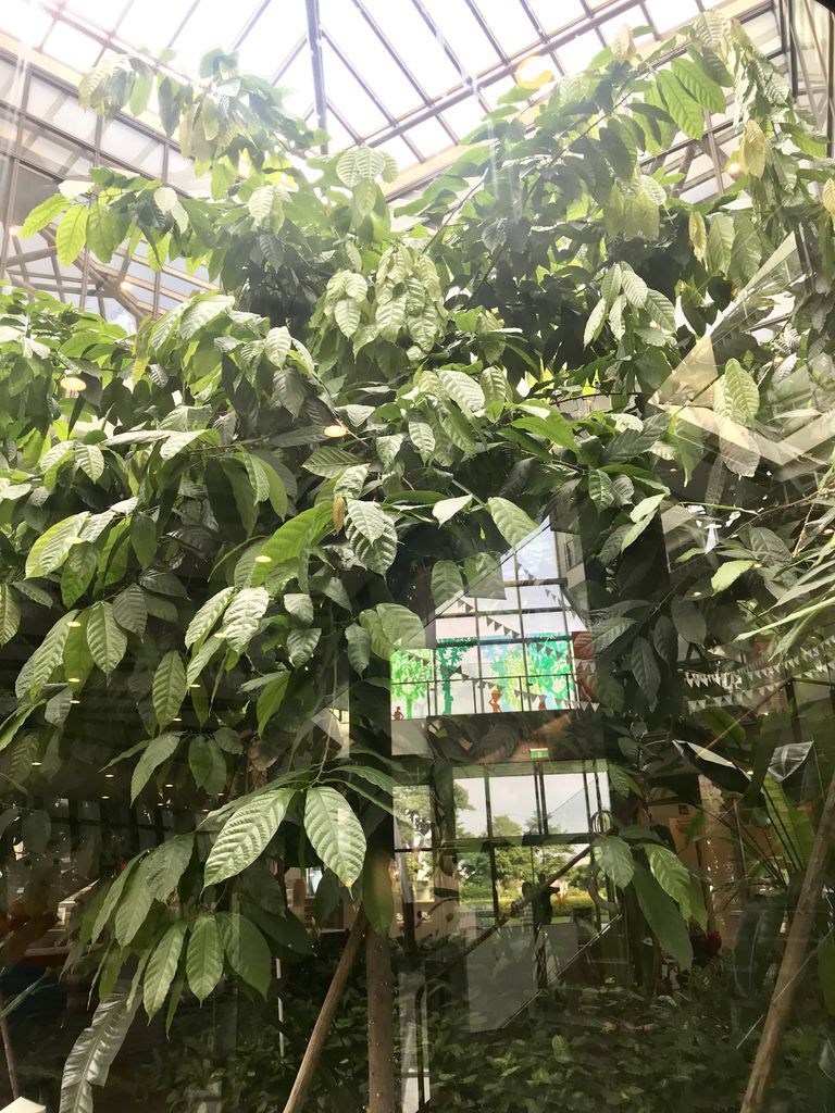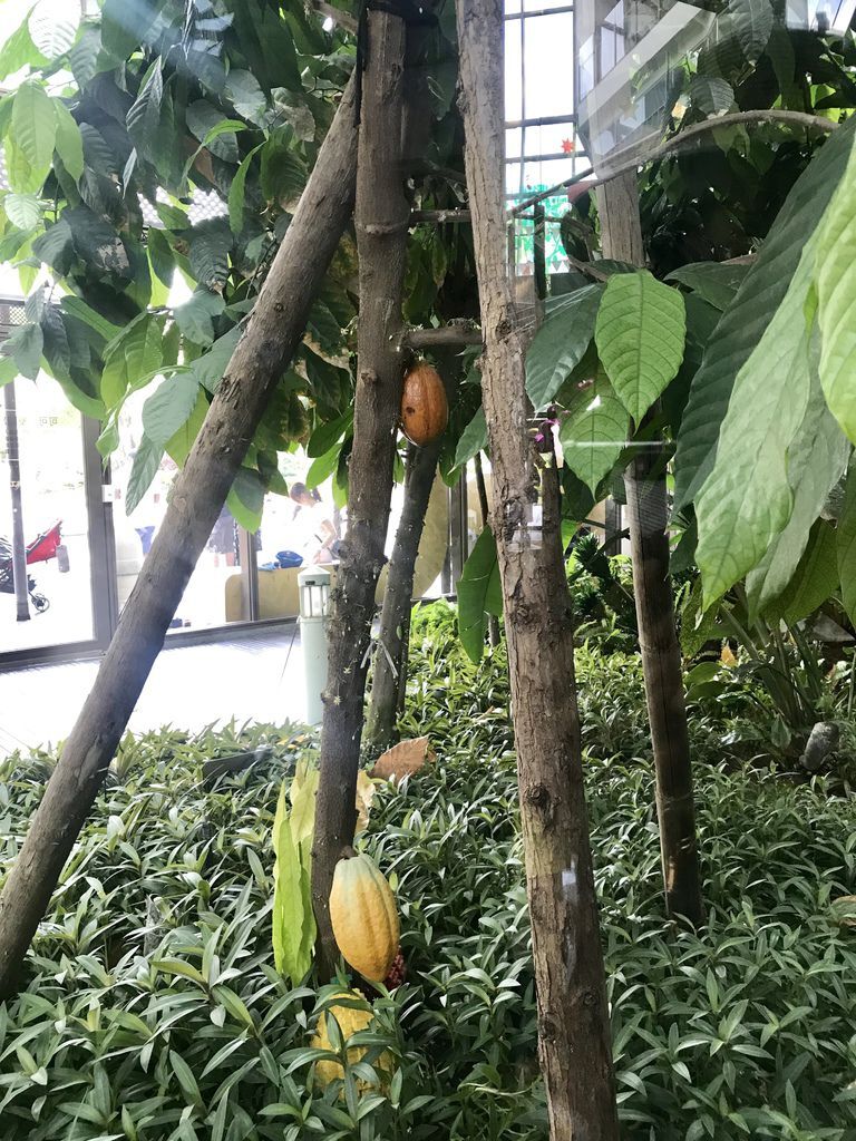 在中庭的溫室裡,有種植可可樹,只有工作人員導覽才可進入參觀,不然平常是進不去的