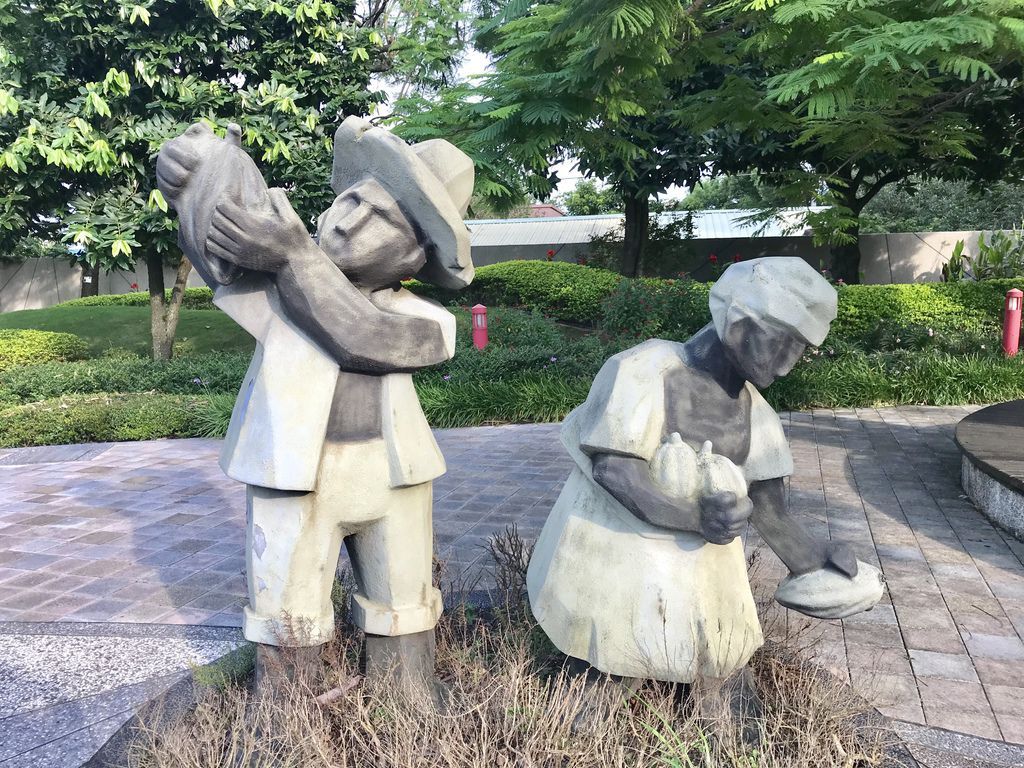 在超大可可果地一旁還有農夫夫妻的在採集可可果的雕像