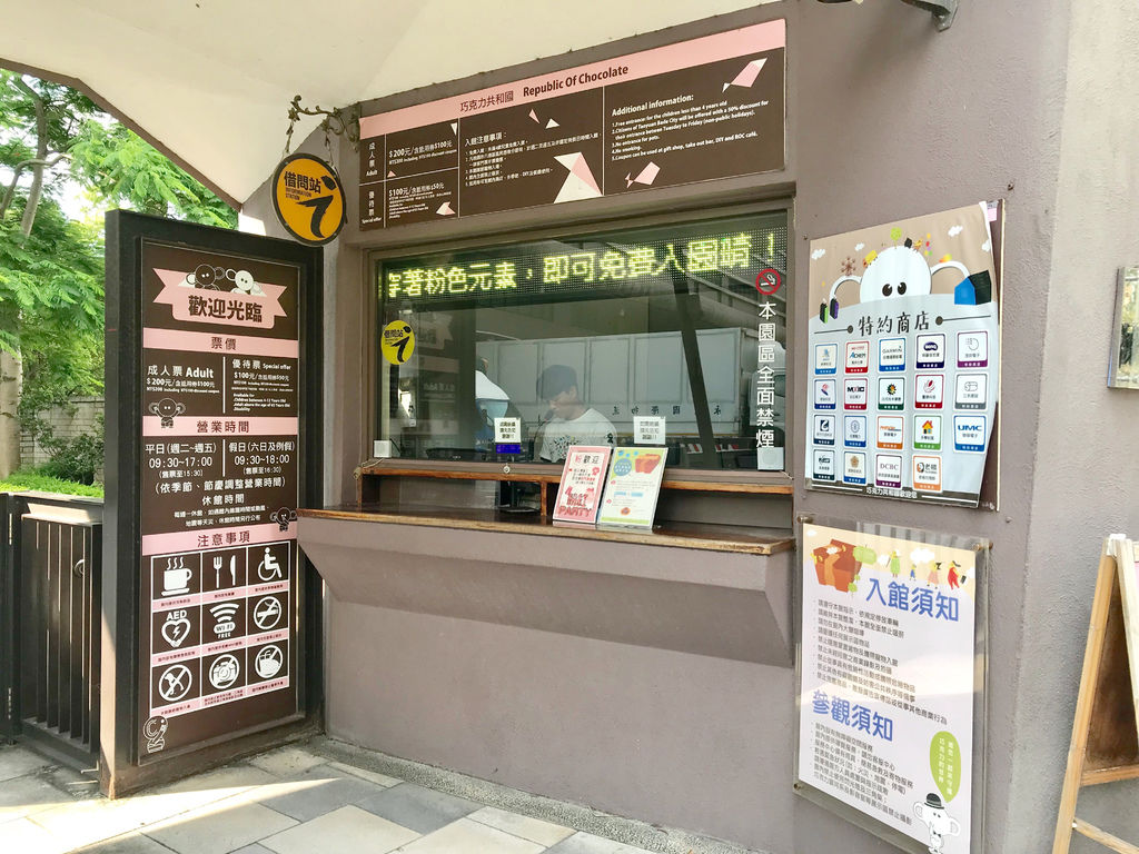 進入園區要先買票,成人票$200元(可折抵$100元)、4-12歲兒童票$100元(可折抵$50元),門口僅可購買門票,想做DIY的巧克力體驗要到館內一樓櫃台預約付費喔。
