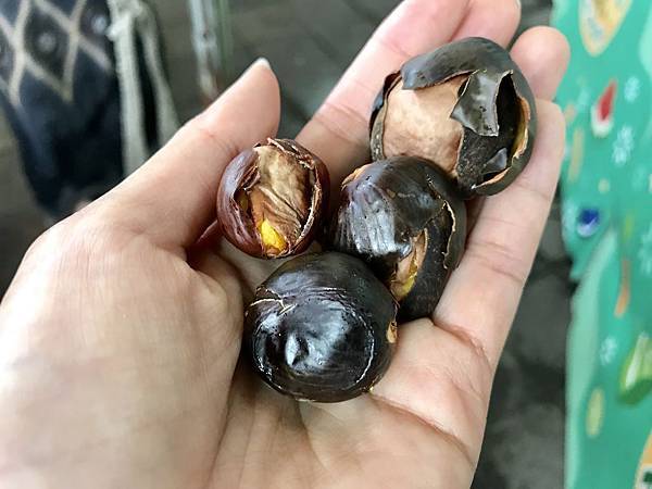 吃起來很像栗子,要都剝到裡面黃色的肉喔,不然吃起來會苦苦的!