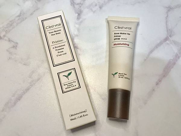 莎菲亞C'EST VRAI-紅玉玫瑰妝前隔離乳SPF30(保濕款),包裝是這樣的米白色的包裝,30ml建議售價是$650