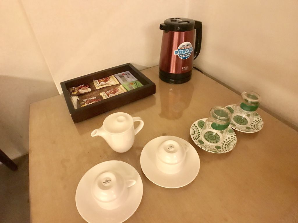 茶具及熱水壺,免費的茶包及咖啡、奶茶即溶包