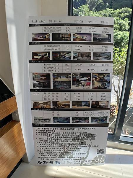 這裡也附上谷野房型的價目表提供給大家參考,而小羽這次入住的是「墨風精緻套房」