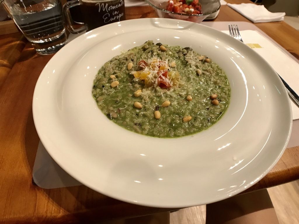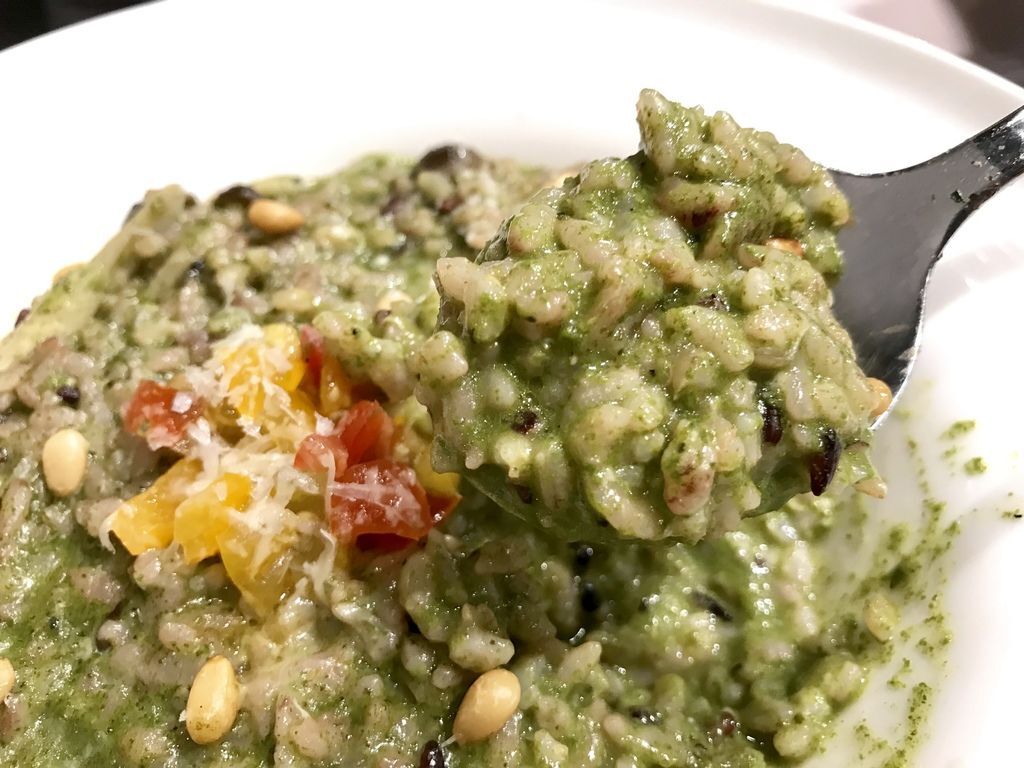 友人點的羅勒青醬燉飯,裡面是五穀米喔,很養身XD