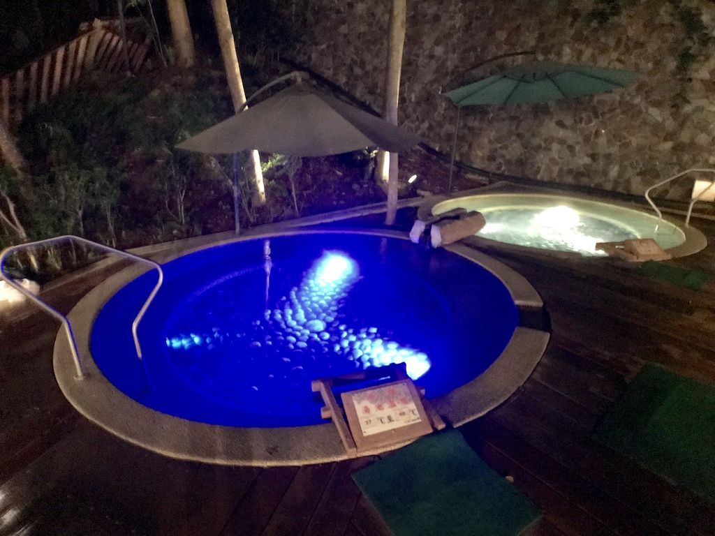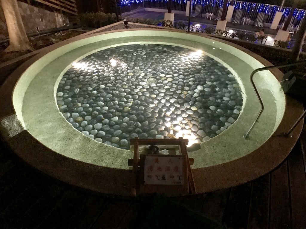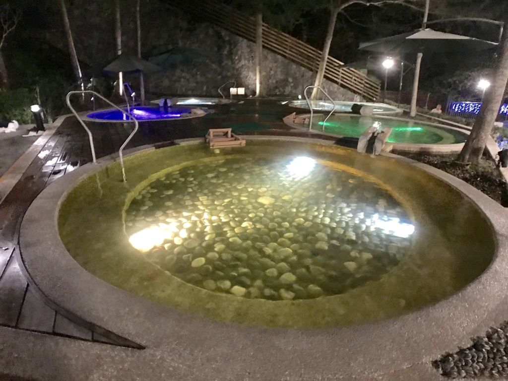 晚上的戶外泡湯區,這裡也有水療,沖擊痠痛的肩頸實在很舒服