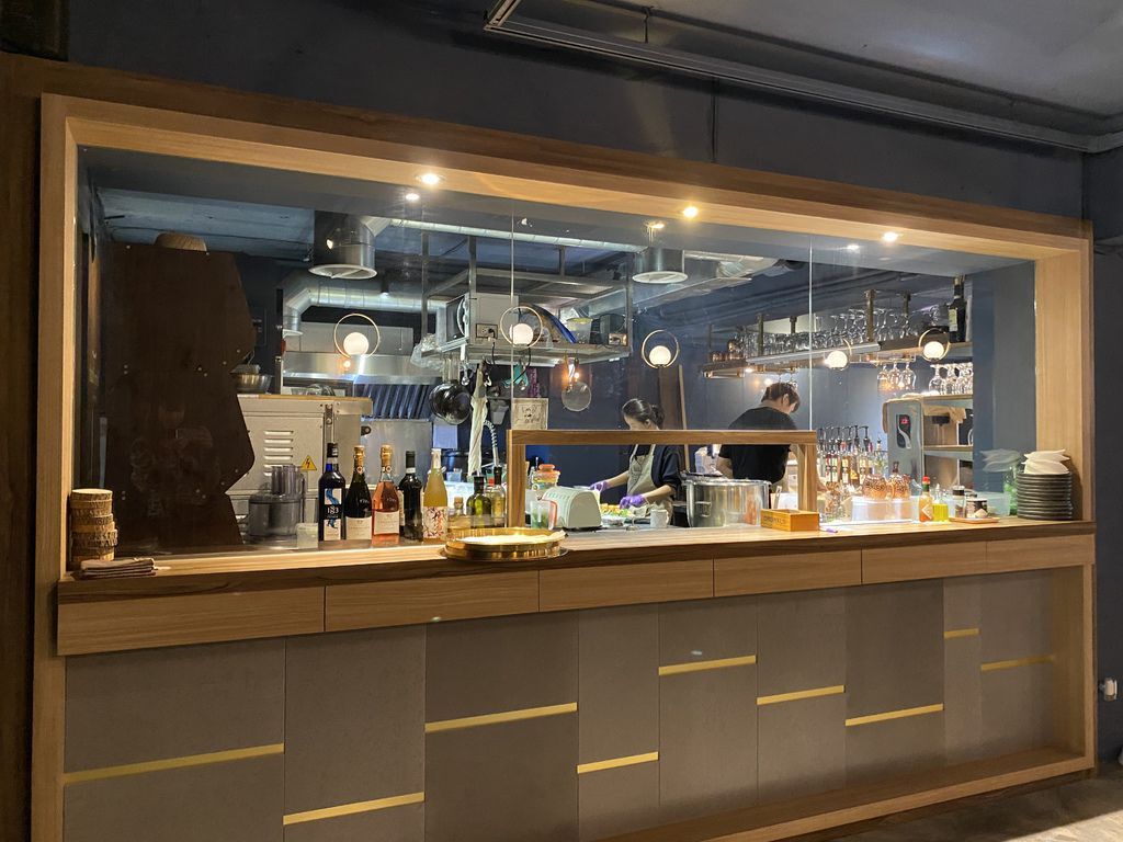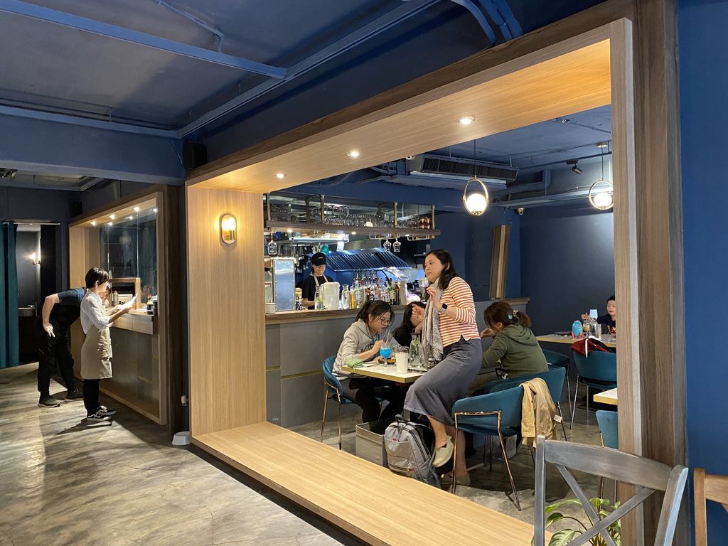 店家是木質設計為主,藍色及咖啡色的搭配,配上燈光十分有氣氛