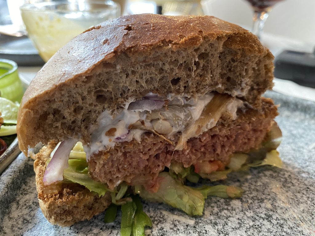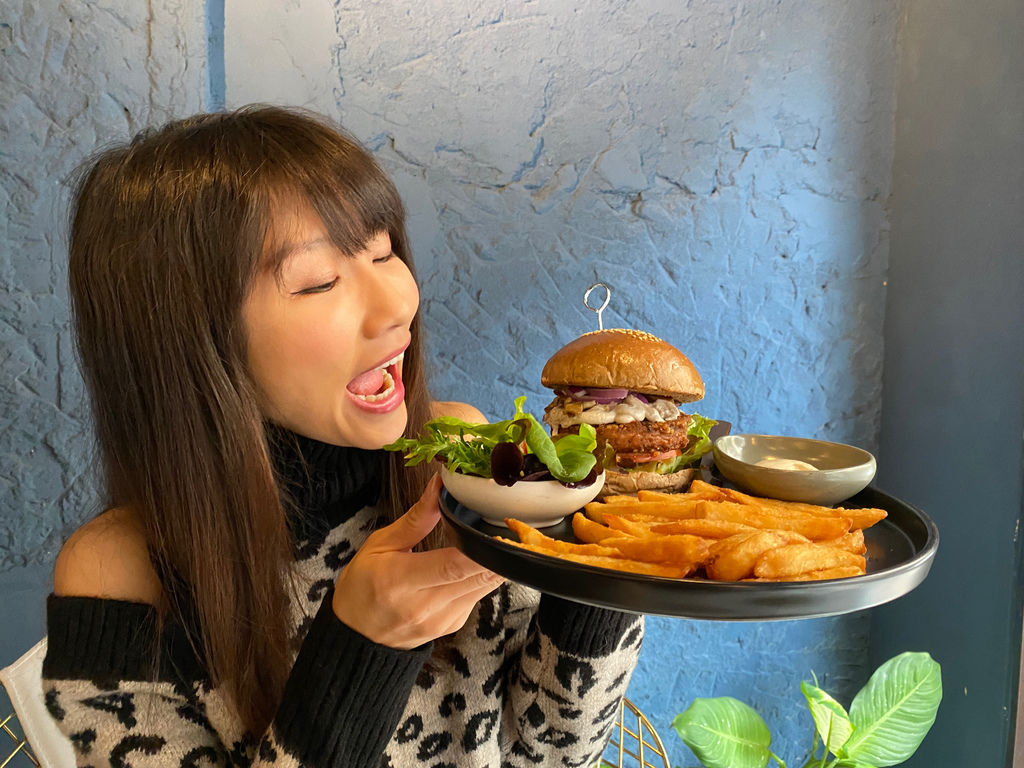 值得一提的是裡面的未來漢堡排,使用的是熱門植物肉的Beyond meat美國未來肉漢堡排,這也是我第一次品嘗到它