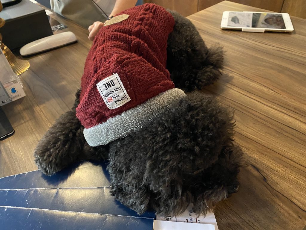 一推開門就看到這隻可愛的黑貴賓店狗守門,毛茸茸的模樣十分可愛