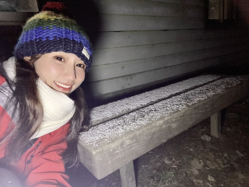 這天晚上外頭飄起了雪,也是我第一次在台灣山上看到雪,就獻給了九九山莊啊!