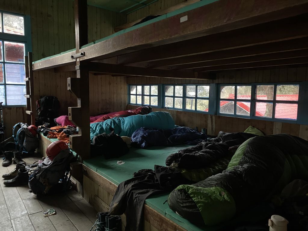 另外需自備睡袋,現場有綠色已鋪好的厚睡墊,覺得不夠的朋友也可以選擇自備,現場入口也有拖鞋,山友可以自備或自行取用,山屋有一定的開燈時間,晚上8點會熄燈,自備頭燈或露營燈最方便,不能把登山杖及登山鞋帶上床上,尊重打掃人的辛苦也尊重下一個使用者。