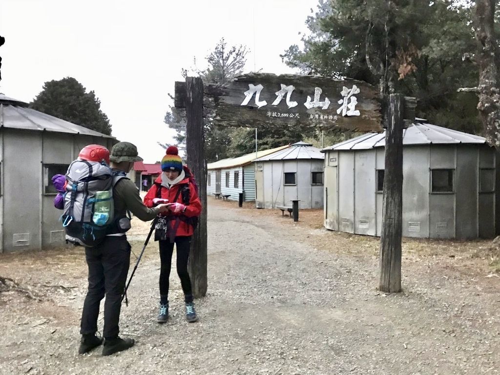 終於到了海拔2699公尺的九九山莊了!一天走了這麼多路,已經是半馬的距離了呀~何況我們還是重裝上山真的很疲累!