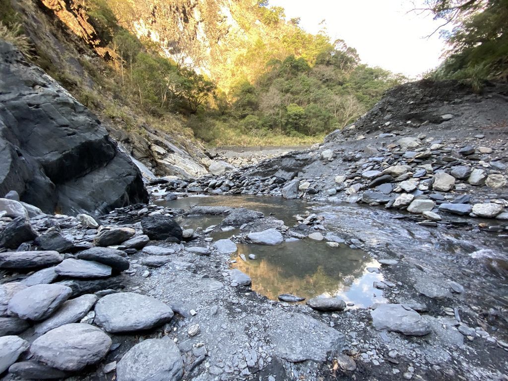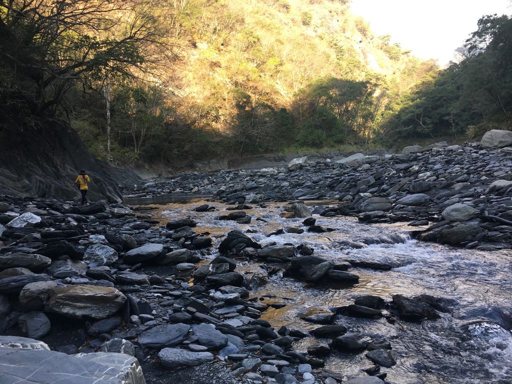 越過最後一座攔沙壩後又是一段平穩的石頭及溪水路段!