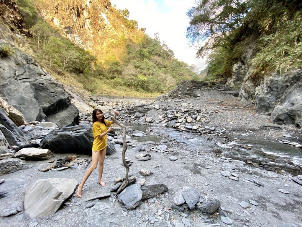 成功經過了第二座的攔砂壩!前方是一大片的石頭路段喔!