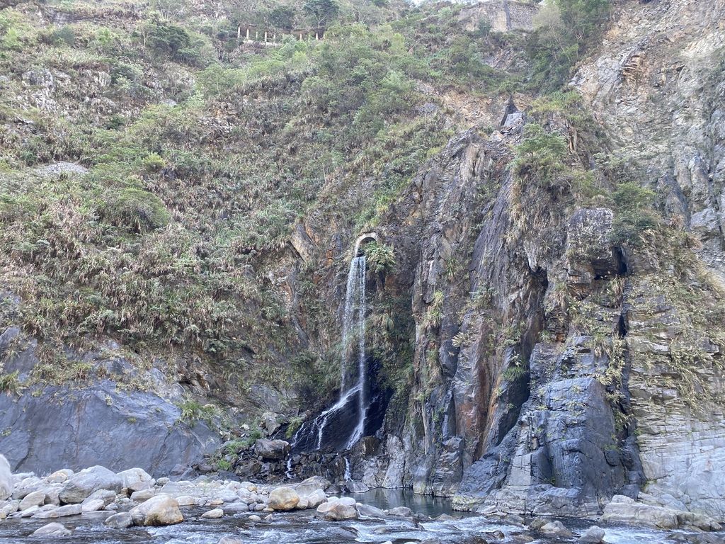 看到左側的瀑布就代表恭喜你已經走到了!而馬陵溫泉就位在我手指的方向~