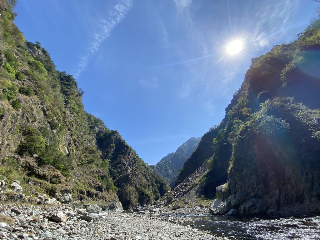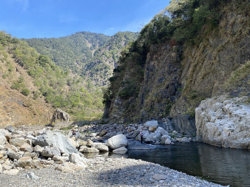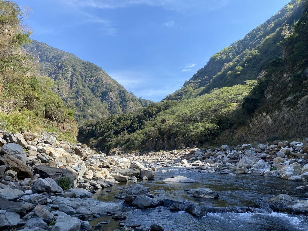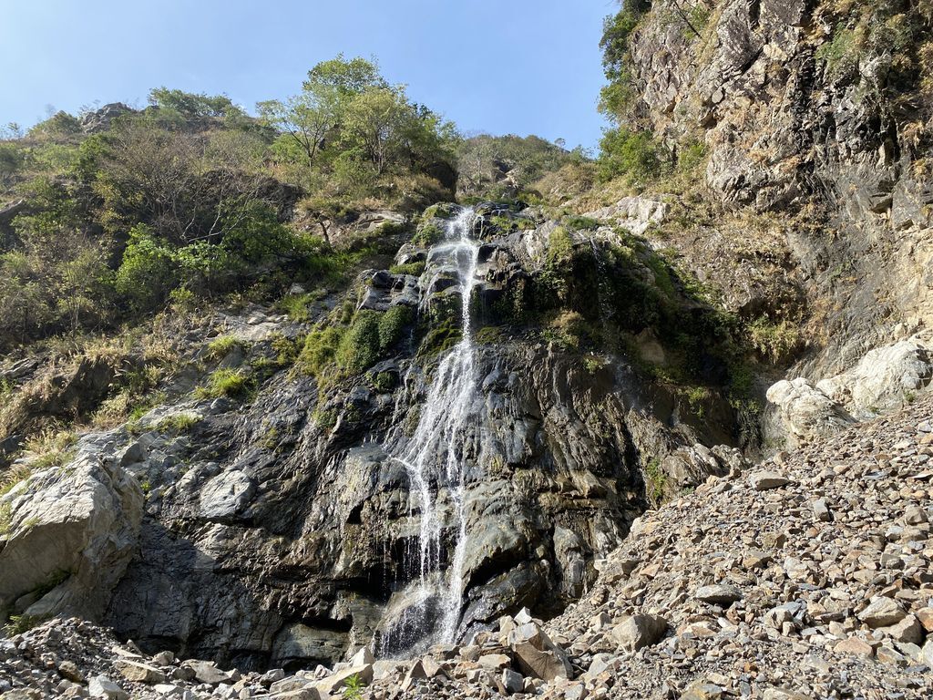 原因是在一開始去程的路段我們便直接往溪谷底走去,沒發現其實在上坡一點的碎石芒草路段有路徑,所以在溪谷來來回回的S型過溪,使得在時間及距離上都增加了許多~這部分也提供給大家做參考喔!