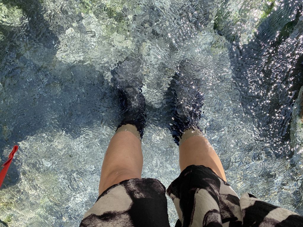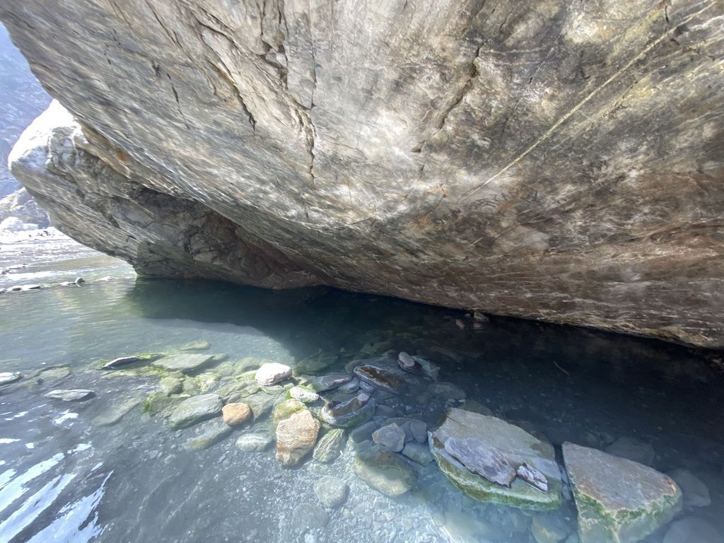 石壁下的溫泉淺度比較淺一些,所以只泡腳的話真的還是會瑟瑟發抖呢!