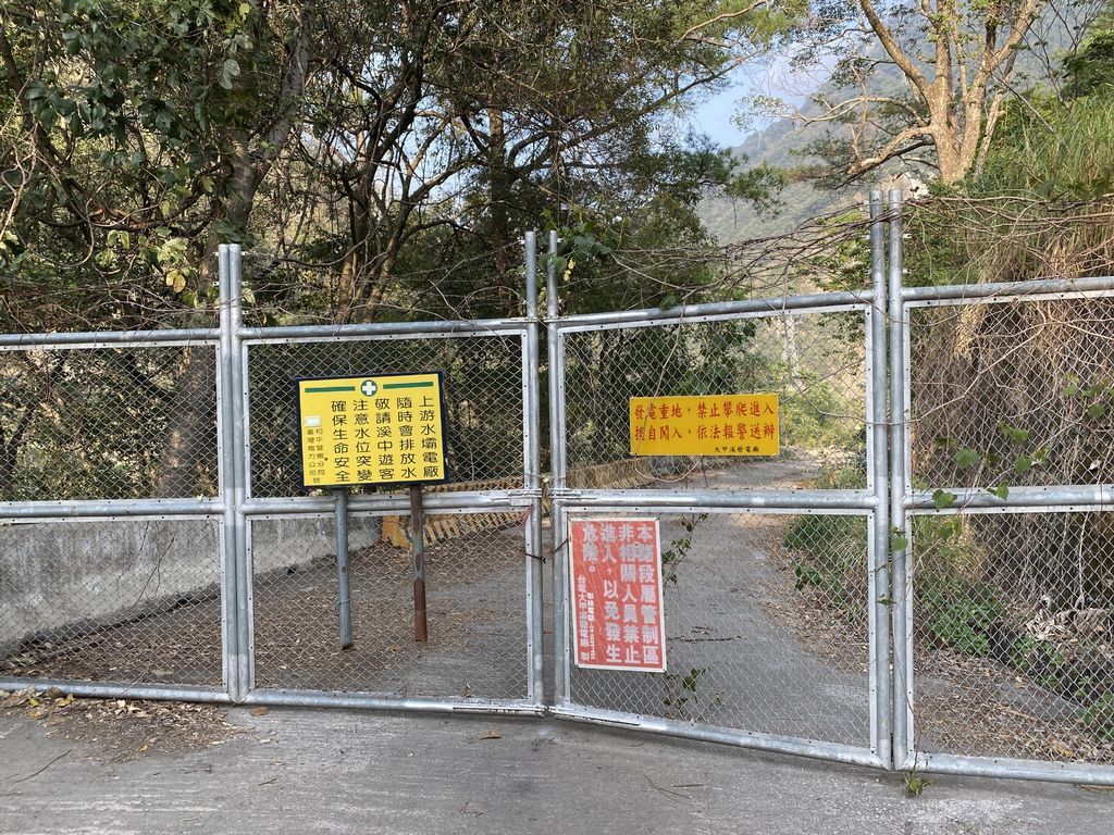 走了一段柏油路緩下坡後,接著會看到這個鐵柵欄,須從一旁攀過,這裡特別要跟大家提醒,馬陵溫泉是隸屬台中市政府警察局,需要申請入山許可證的喔!