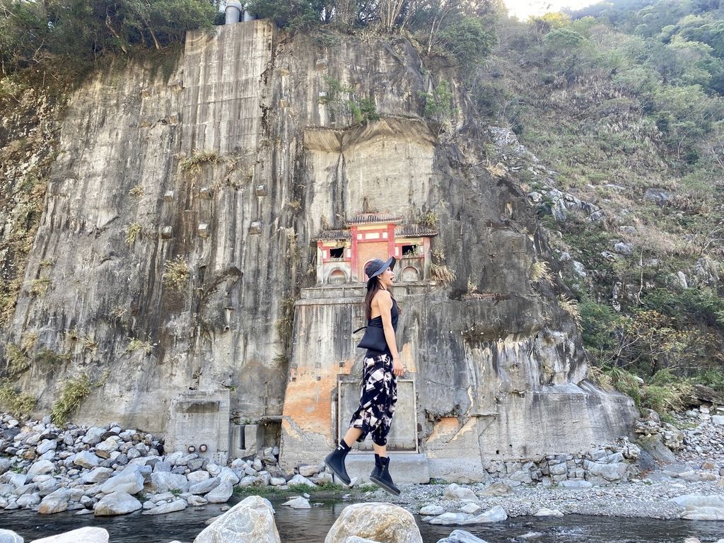山壁上像是紅廟的其實就是大甲溪發電谷關分廠遺址,因為921地震和桃芝風災後的關係,導致河床淤積,所以關閉了這座發電廠,谷關電廠吊橋遺跡歷歷在目阿!