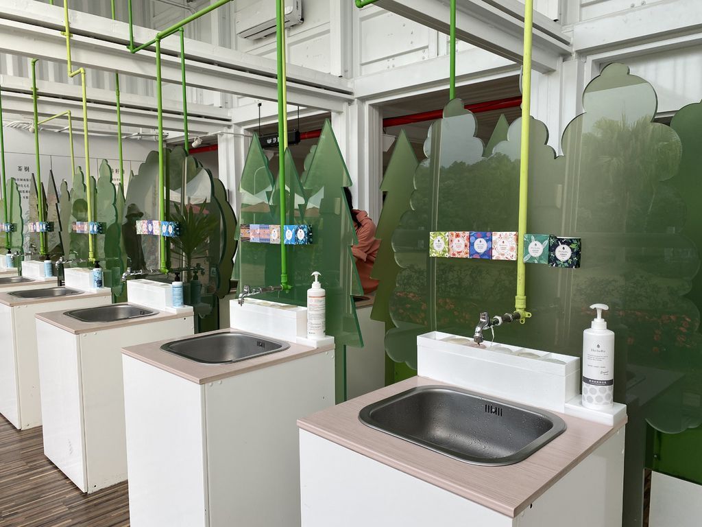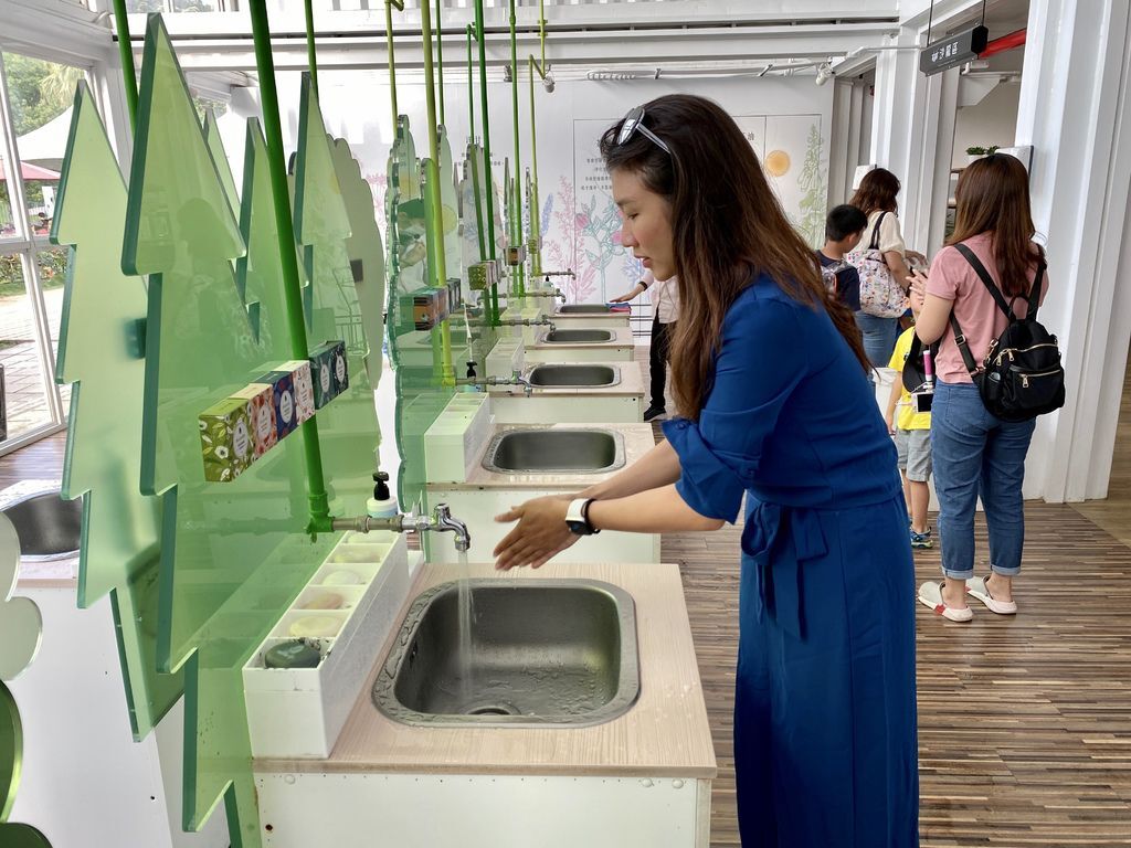 防疫時期最需要洗手了!這裡還有許多的洗手台體驗區,讓全家大小都愛上洗手,而洗手台上有不只一種品項的肥皂,完全不怕旅客試用,實在是十分大方啊!