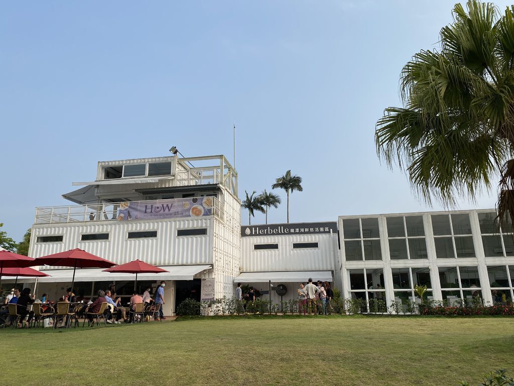 Herbelle龍潭湖畔悠活園區,門口是一個非常吸睛的純白貨櫃建築物,其就位於龍潭湖風景區的正對面,地址位於原台化礁溪廠區,過雪山隧道約15分後可以抵達。