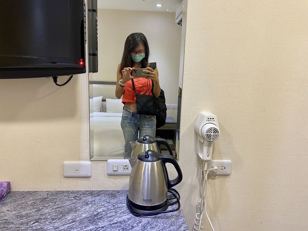 房內有鏡子和熱水壺,有趣的是吹風機是放在這裡而不是浴室><