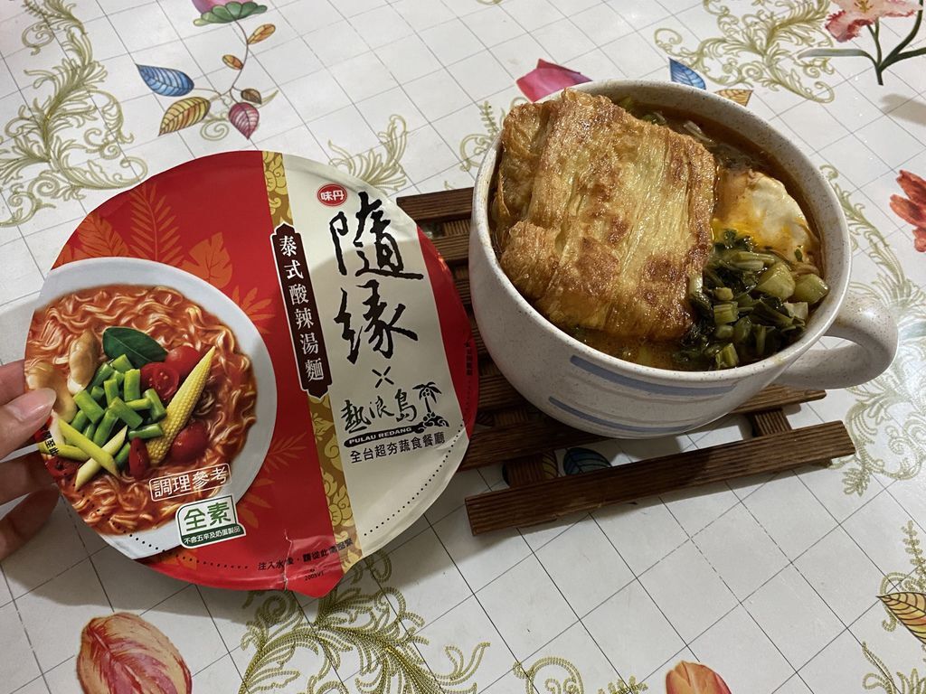 完成了!羽媽的手藝讓原本的異國素食泡麵混搭成了中式口味XD