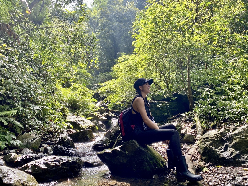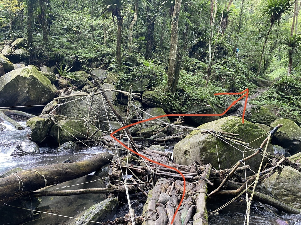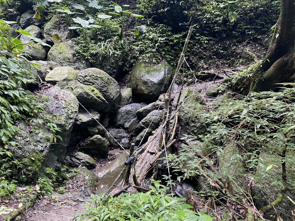 而我這次穿的是雨鞋,實際走完路線後也覺得這濕滑路段蠻適合穿雨鞋的!大家也可以評估一下帶個綁腿或是較止滑的登山鞋前往。