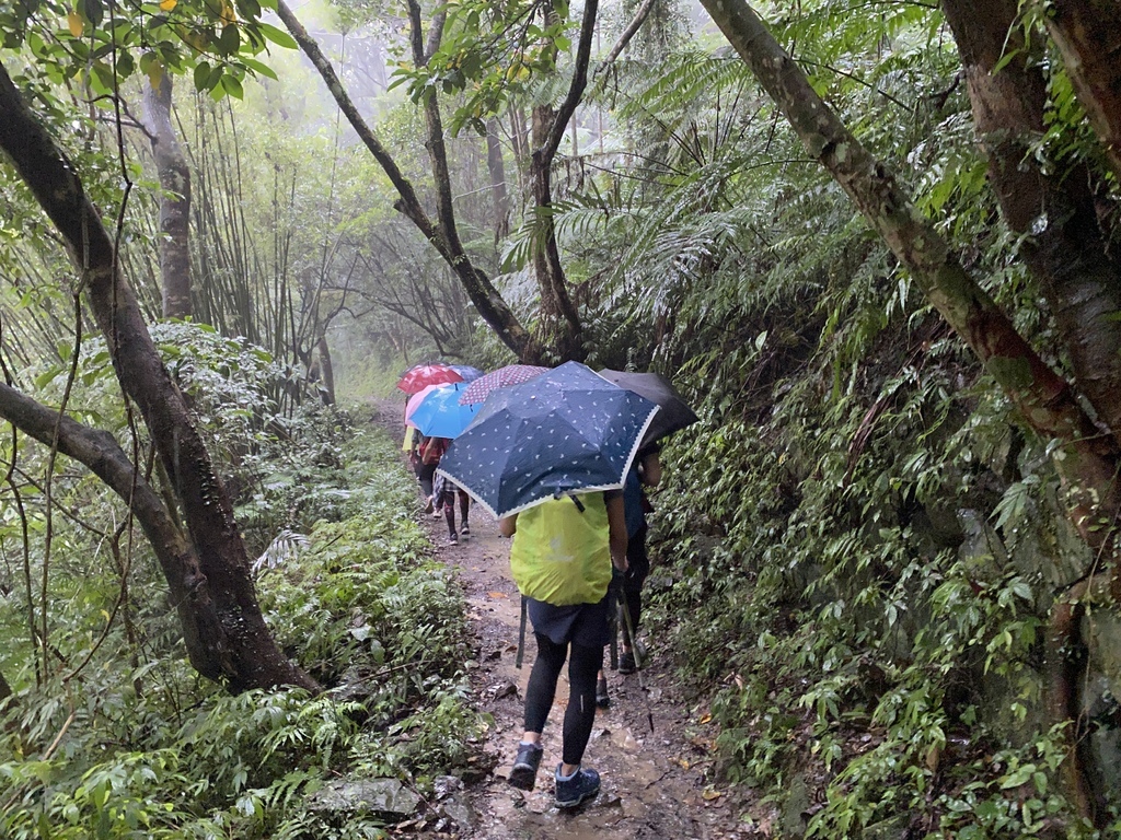 我在下山回程的時候已經開始下起了小雨,遇上一群撐傘準備下山的山友們!