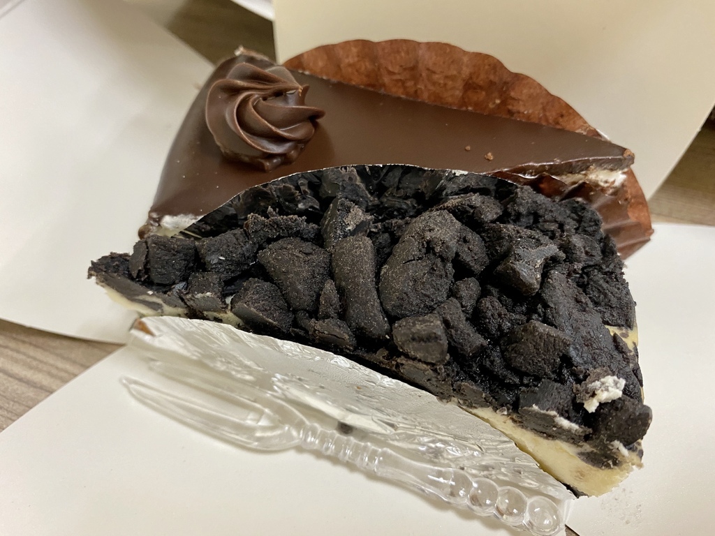 黑岩優格乳酪蛋糕的特色就是上面有黑色岩石狀的餅乾,鬆脆好吃~中曾有微酸的優格乳酪,最下層也有特製巧克力餅乾,吃起來很美味!