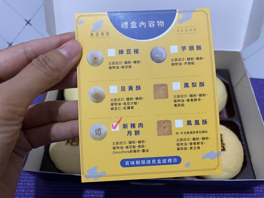 禮盒內也有月餅內容物資訊,皆為無蛋無奶的Vegan禮盒