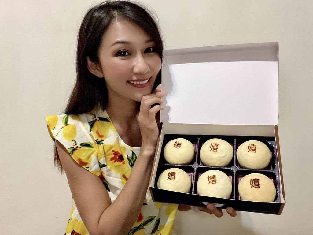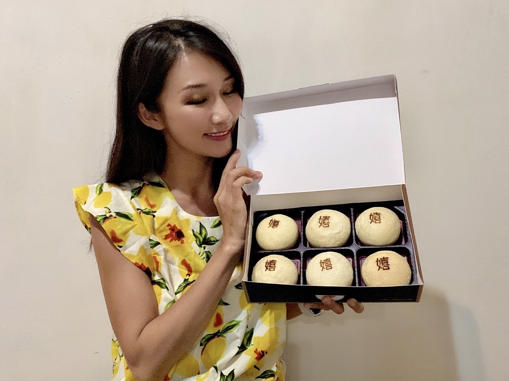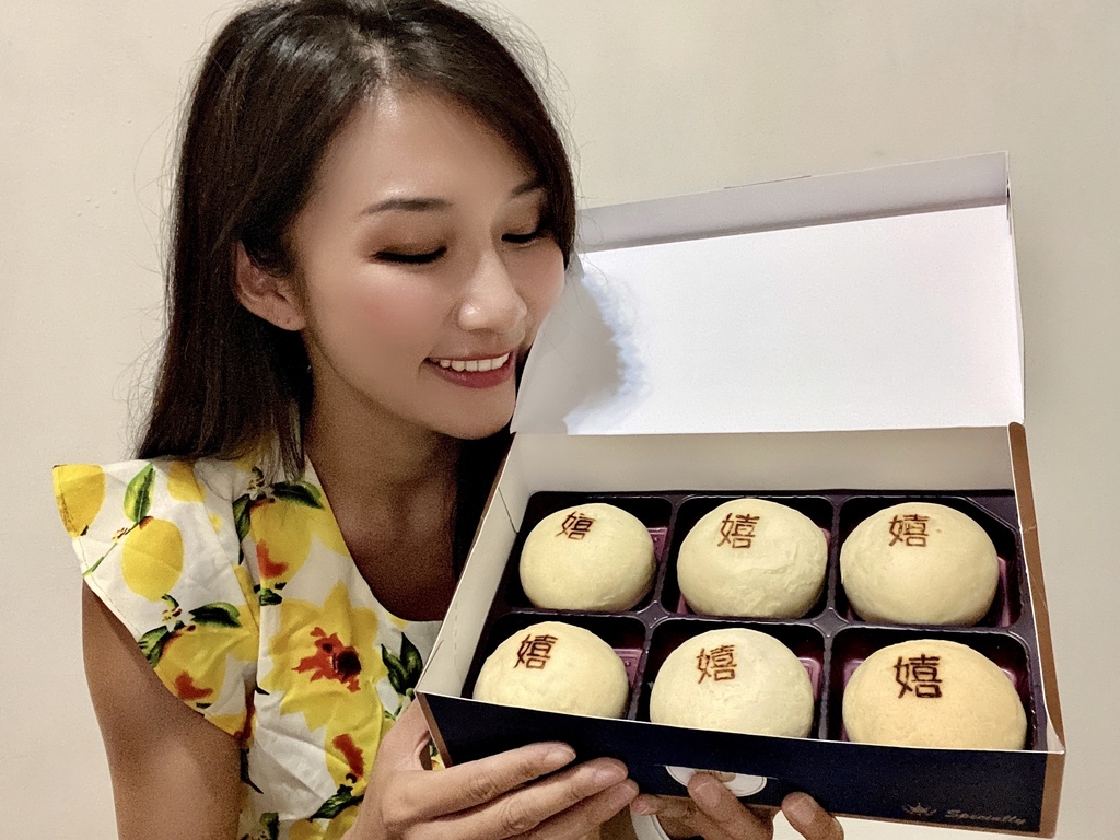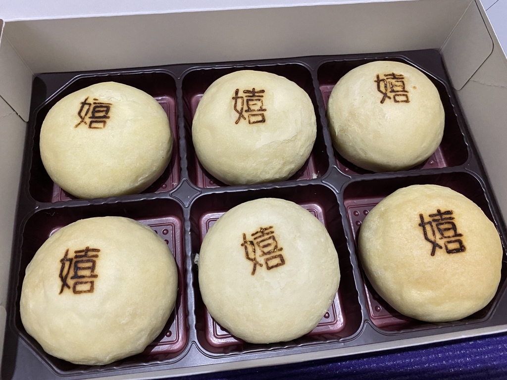 禮盒打開是這樣喔~每一個月餅上都有印上「嬉」字