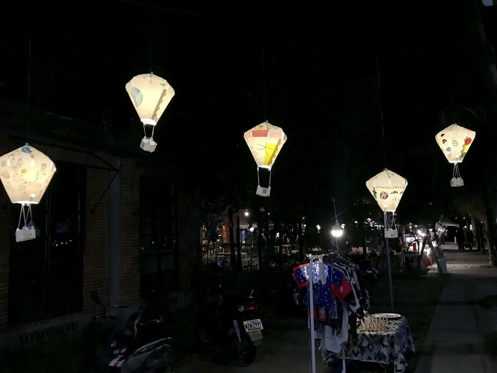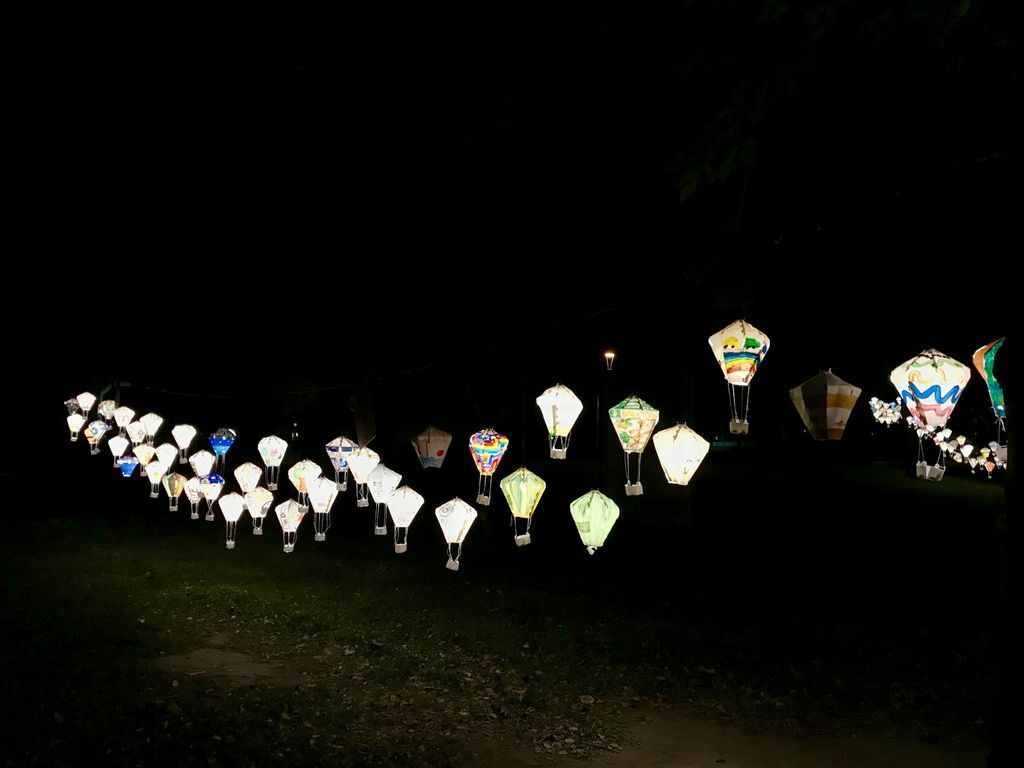 夜晚的熱氣球彩繪燈,點綴了鐵花村,呈現截然不同的氣氛!