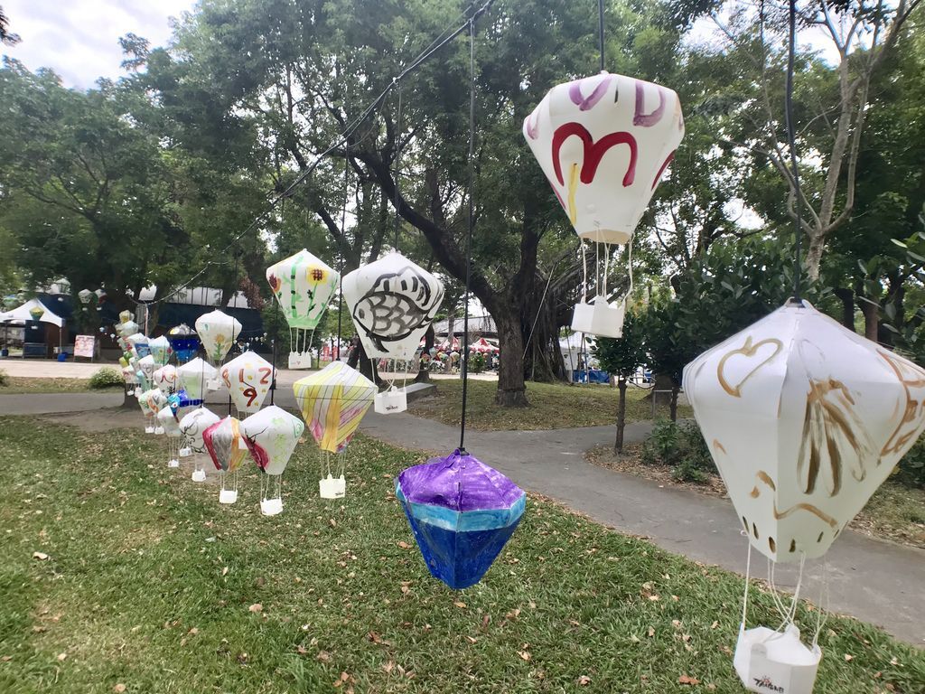 在樹上垂掛著許多這樣的小小彩繪熱氣球~上面是不同的塗鴉,實在十分可愛!