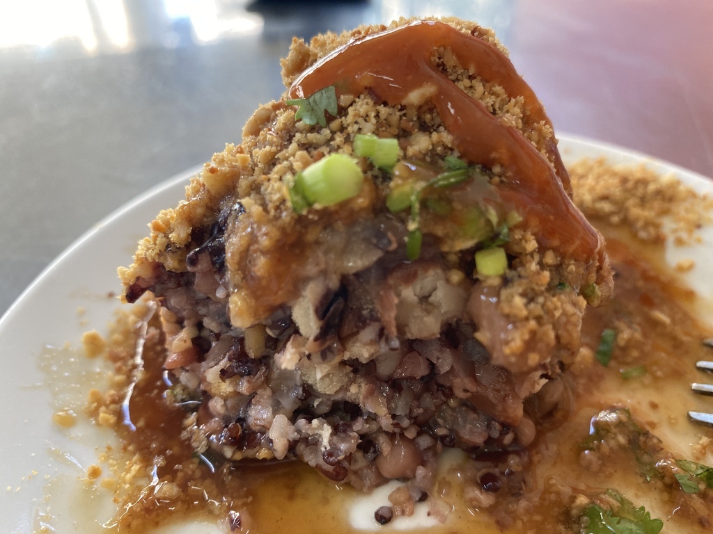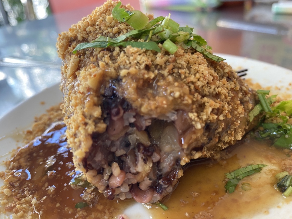 咬了一口的口感跟菜粽很不一樣,有非常多的紅藜顆粒口感,內心想著..老闆這樣下重本真的很划算又健康啊~