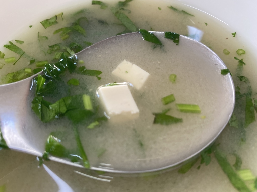 味噌湯的風味簡單樸實,因為我喜歡香菜,所以加了很多XD