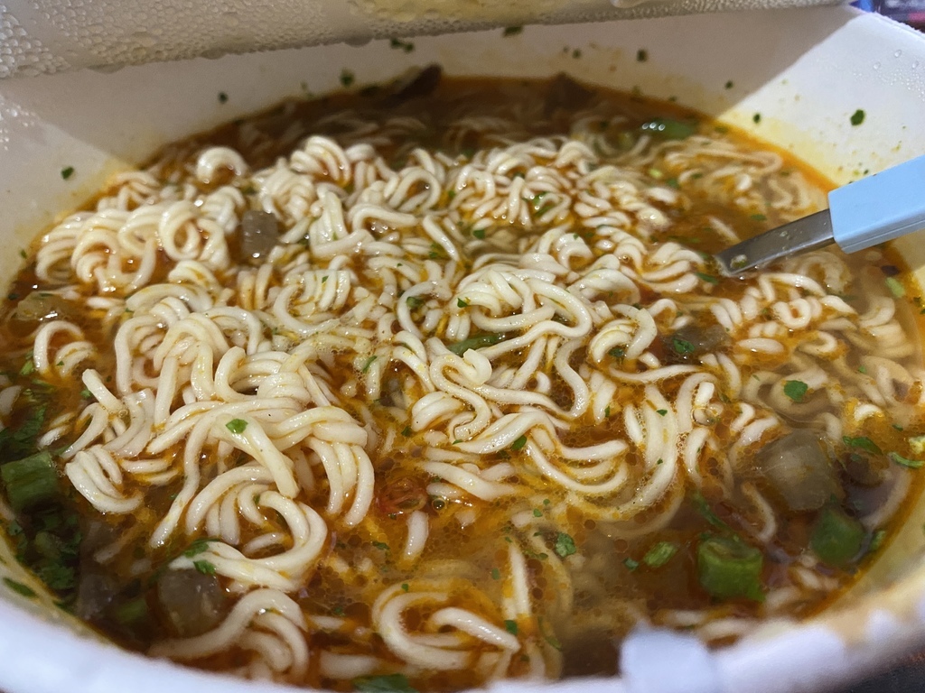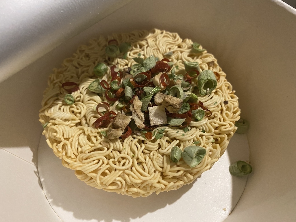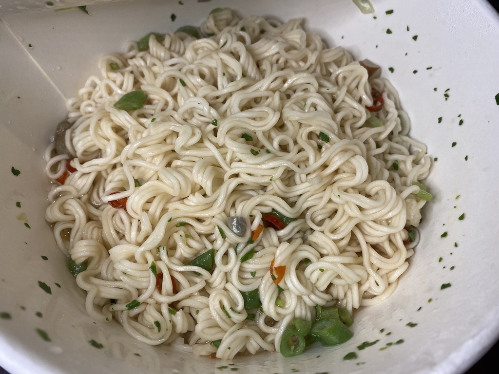 至於蔬菜包雖然也是加分的其中一個亮點,建議可以選擇其他較易撈取的蔬菜食材做替換,這樣在倒熱水的時候才不會一直擔心倒出來的問題。