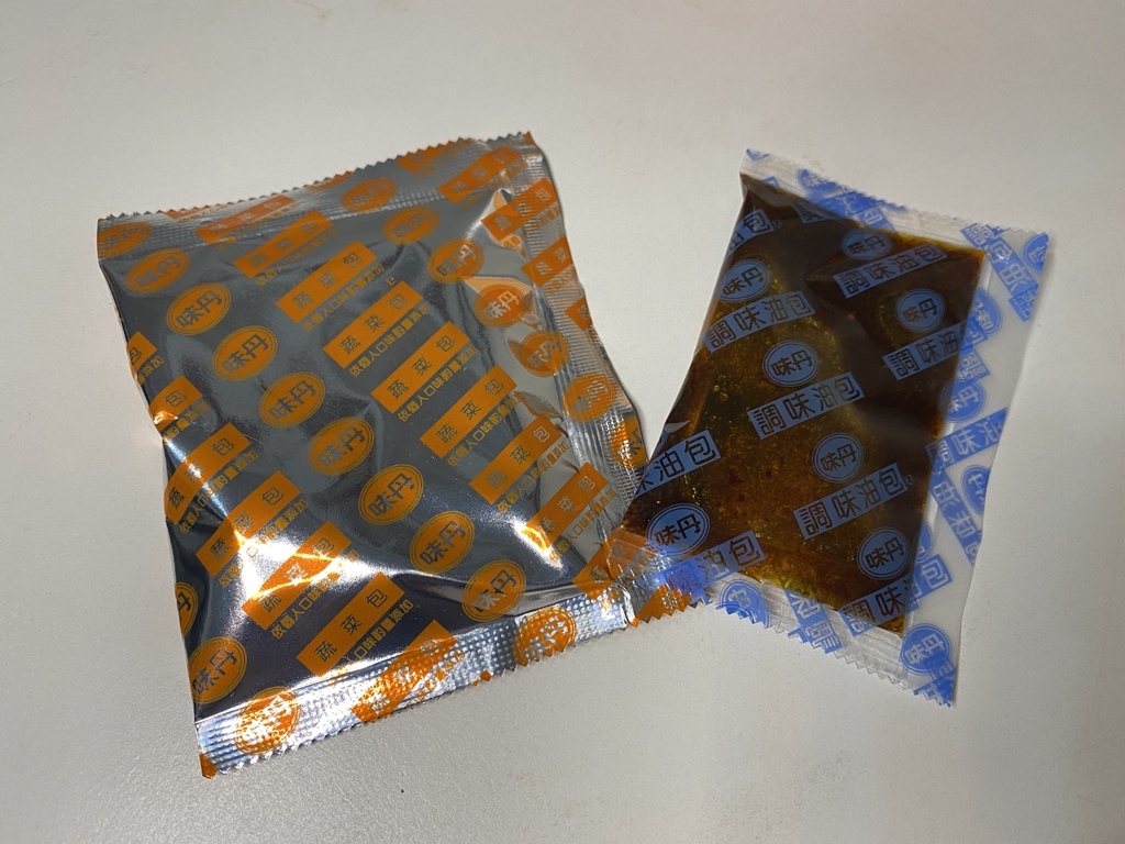 左為蔬菜包,右為調味油包