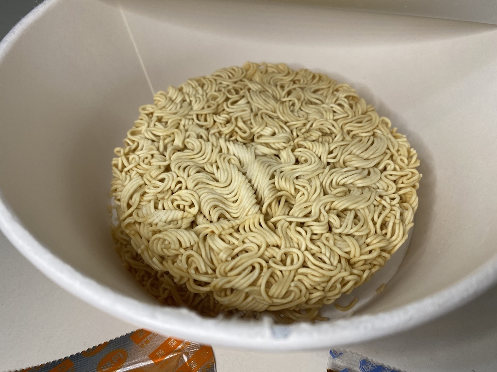 過了大約三分鐘,麵體很快就可以泡開了!接著最大的任務就是要把泡麵碗中的熱水倒掉~