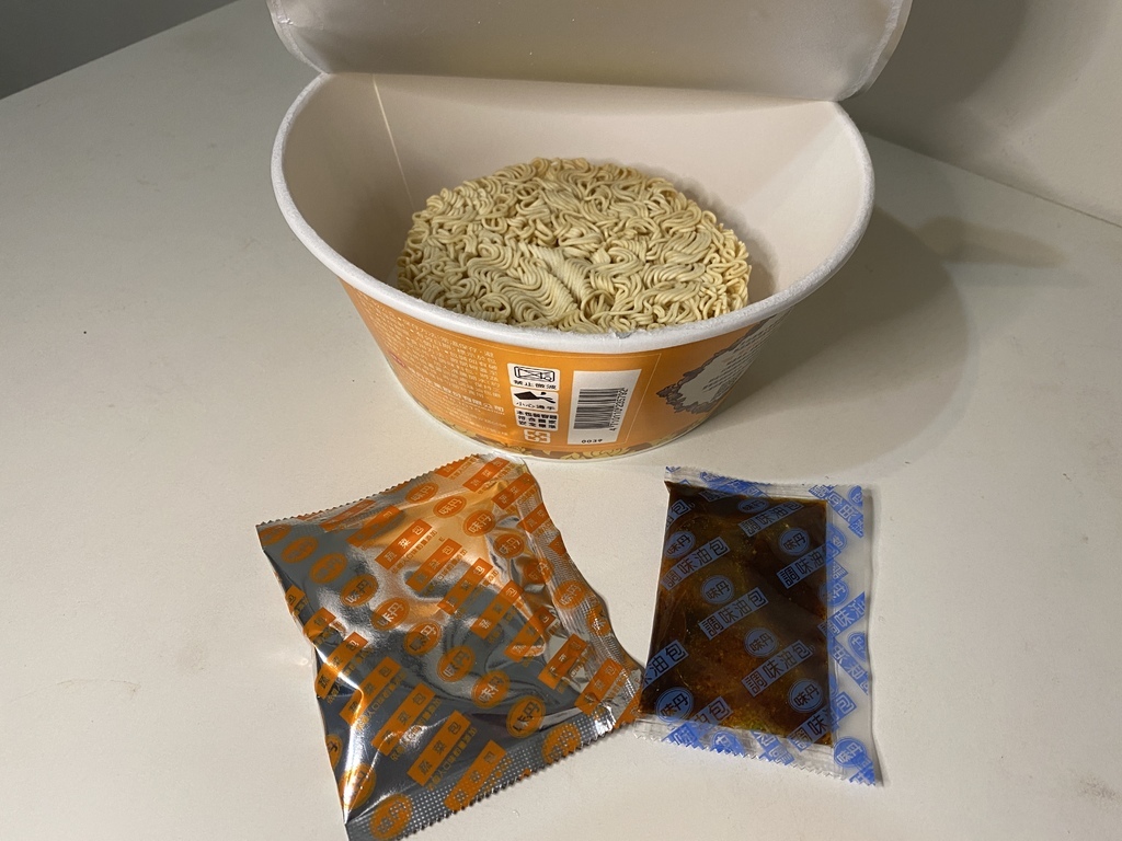 接著打開來看看內容物吧!主要為麵體及兩包配料包~