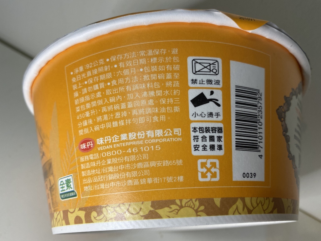 一碗淨重為$92公克,可保存六個月。