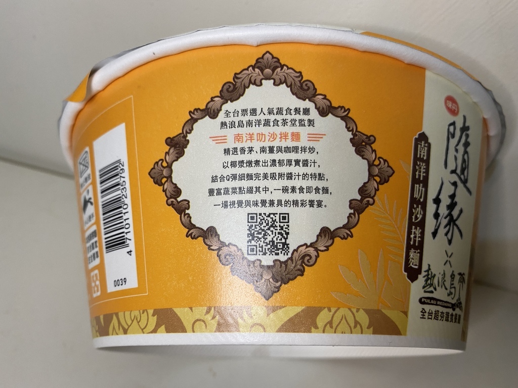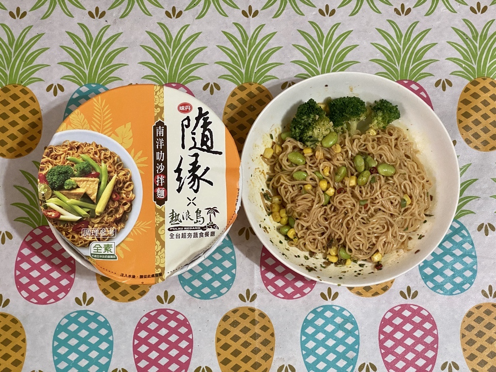 超商素食種類真的越來越多,繼先前在全台超商限量上市的味丹隨緣素泡麵的泰式酸辣湯麵後,現在又推出了新口味的南洋叻沙拌麵!同時這次也一樣是跟台灣知名蔬食餐廳熱浪島南洋蔬食茶堂做聯名合作~而這隨緣南洋叻沙拌麵有別一般素食泡麵的印象,是一款少見的即時素食乾拌麵,主打以精選香茅、南薑及咖哩拌炒,且以椰漿燉煮調製而成的醬汁,加熱水三分鐘即可立即享用異國美味!這樣的超商素食泡麵為不含五辛及奶蛋製品的全素商品,建議售價一碗為$39元,這篇文章就讓丁小羽帶大家一起去開箱叻沙素拌麵吧!