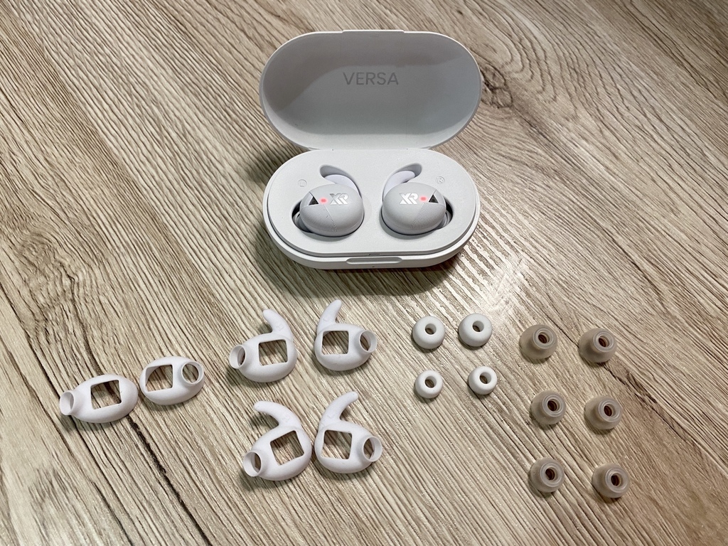 另外也跟大家分享一下豐富的耳機配備內容物,包含原本耳機本體上的,共有矽膠耳勾4組(S、M、L、無耳勾)、Spinfit耳塞3組(S、M、L)、VERSA隔音耳塞3組(S、M、L)