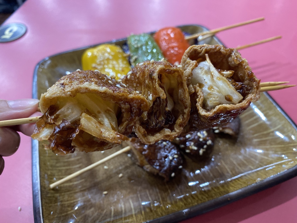 特別講一下這個串燒~闆娘說這款「豆皮夾高麗菜」是店家的隱藏人氣菜單,除了沒有在菜單上之外,客人常常指定要這款都吃不到!