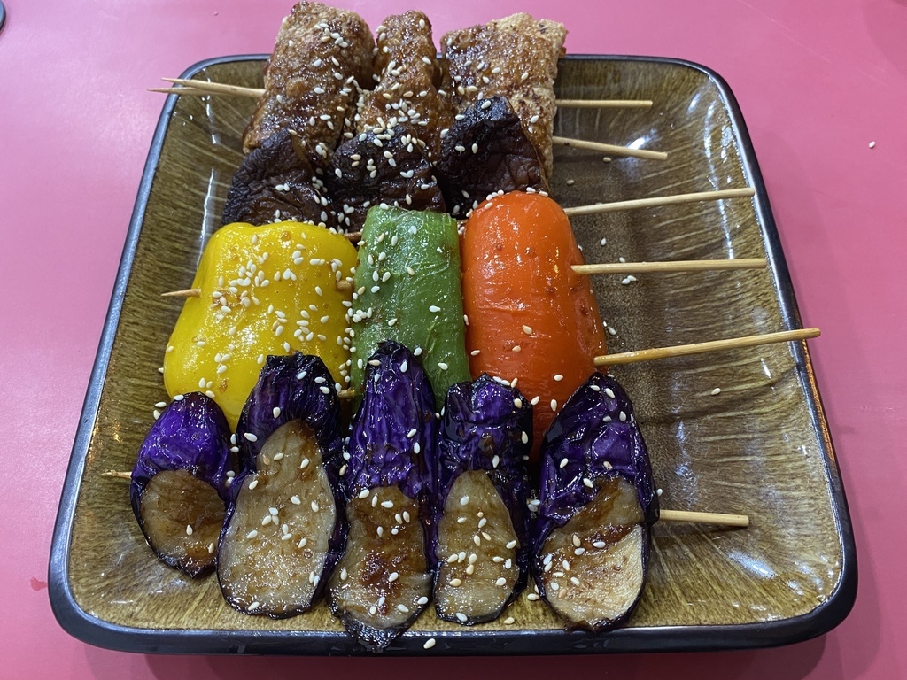 沒多久我點的素食串燒就上桌了!