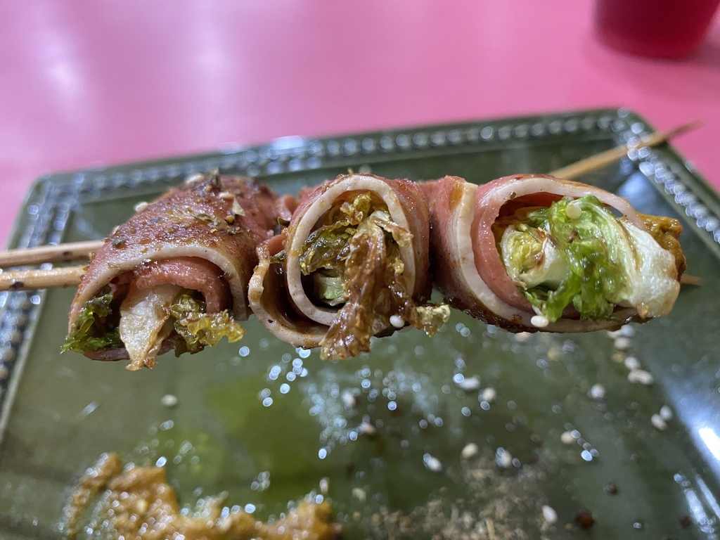 培根串烤完後,中間的娃娃菜十分多汁,整體的口感不乾!