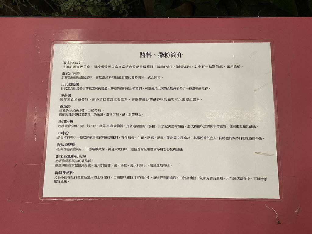 如果沒有想法的話,桌上還有這樣的醬料、灑粉簡介可以參考喔!