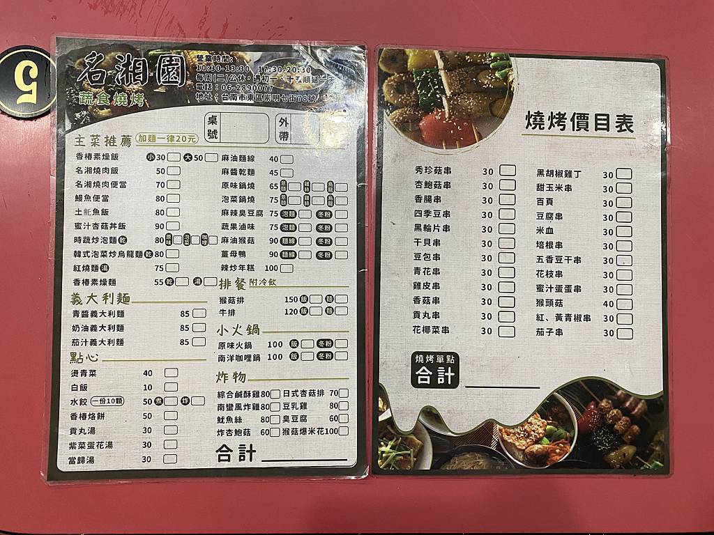另外名湘園蔬食燒烤除了素食燒烤的選擇外,還有許多其它的主食餐點,大家也可以試試喔~以上就分享給大家,店家資訊也再以下提供給需要的朋友!