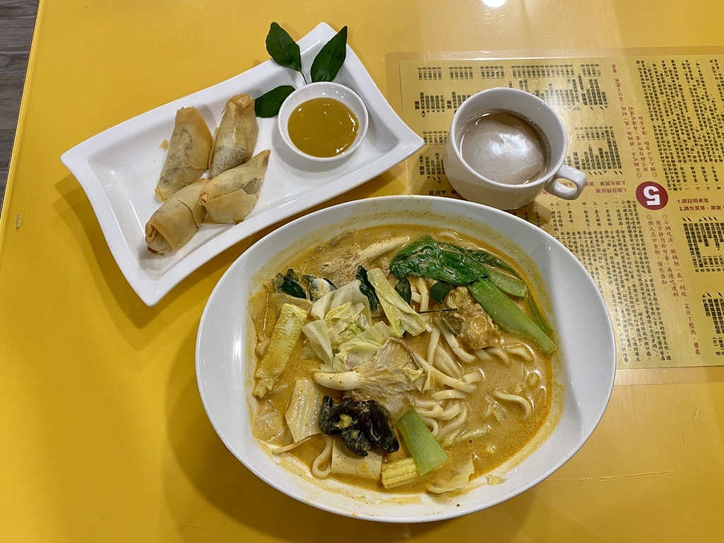 至於叻沙是新馬地區的特色麵食,是華人結合印度及當地人的料理做法,風味上則咖哩及沙茶的香氣,湯頭部分很夠味!
